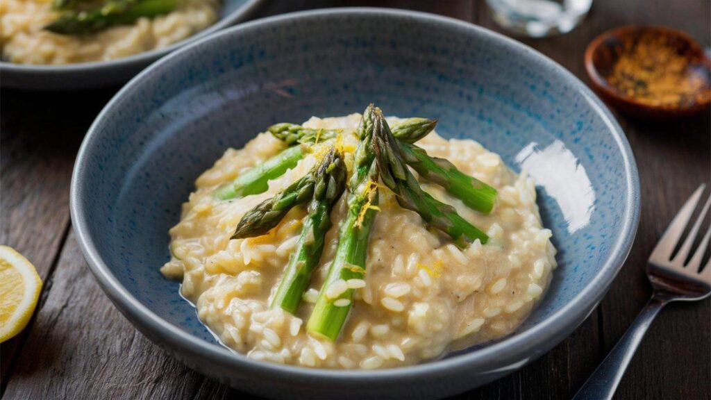 - Risotto agli asparagi, vino rosso, pecorino e pepe nero: dai un twist al risotto con gli asparagi, cremosissimo grazie a Vallé Naturalmente
